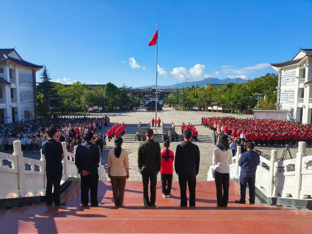 為進一步弘揚和培養(yǎng)學生愛國主義精神,牢記國恥、以史為鑒,增強全民國防觀念,自覺履行國防義務,關(guān)心、支持、參與國防建設。9月25日上午,我校在中心廣場舉行2023年“踔厲奮發(fā)強國防,勇毅前行向復興”全民國防教育月主題升旗儀式,全體教職工、高一高二年級學生、麗江軍分區(qū)代表參加了升旗儀式。