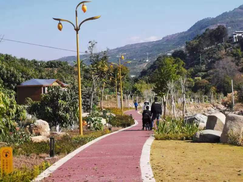 經(jīng)過(guò)兩年的建設(shè),龍頭果子山鄉(xiāng)村振興示范點(diǎn)一期芒果莊園建設(shè)基本完成。建成了芒果大觀園69畝、聲光電系統(tǒng)、沿河800米步道、觀景臺(tái)、游客中心、芒鄉(xiāng)文化館、示范民宿2幢、“兩山”精神展示館等接待設(shè)施。