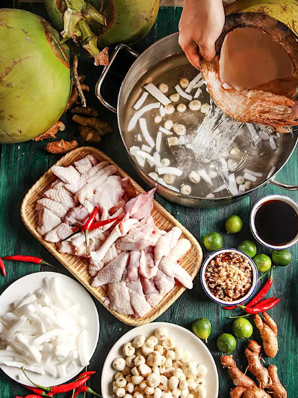 一鍋椰子水與泉水配比好的清湯