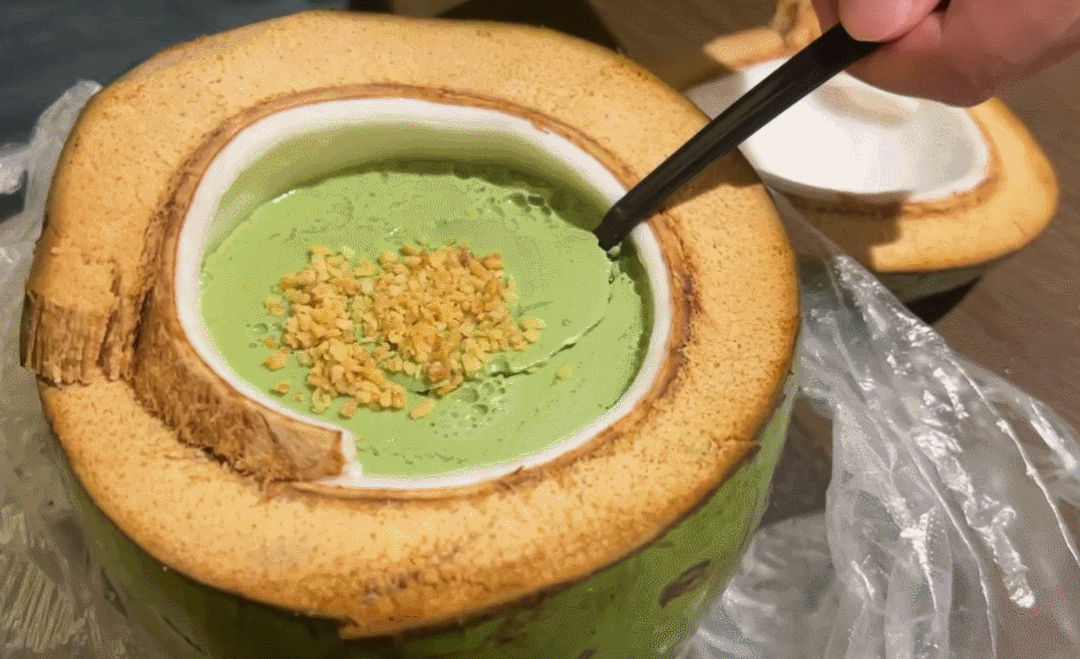 白嫩椰肉隨沸水翻騰