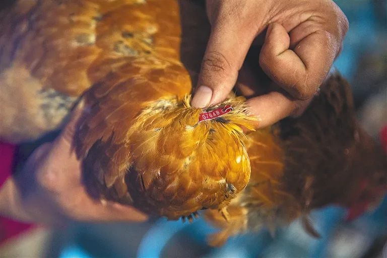 文昌雞國家級保種場的雞身上都有編碼,方便開展保種、育種工作。海南日報(bào)記者 袁琛 攝