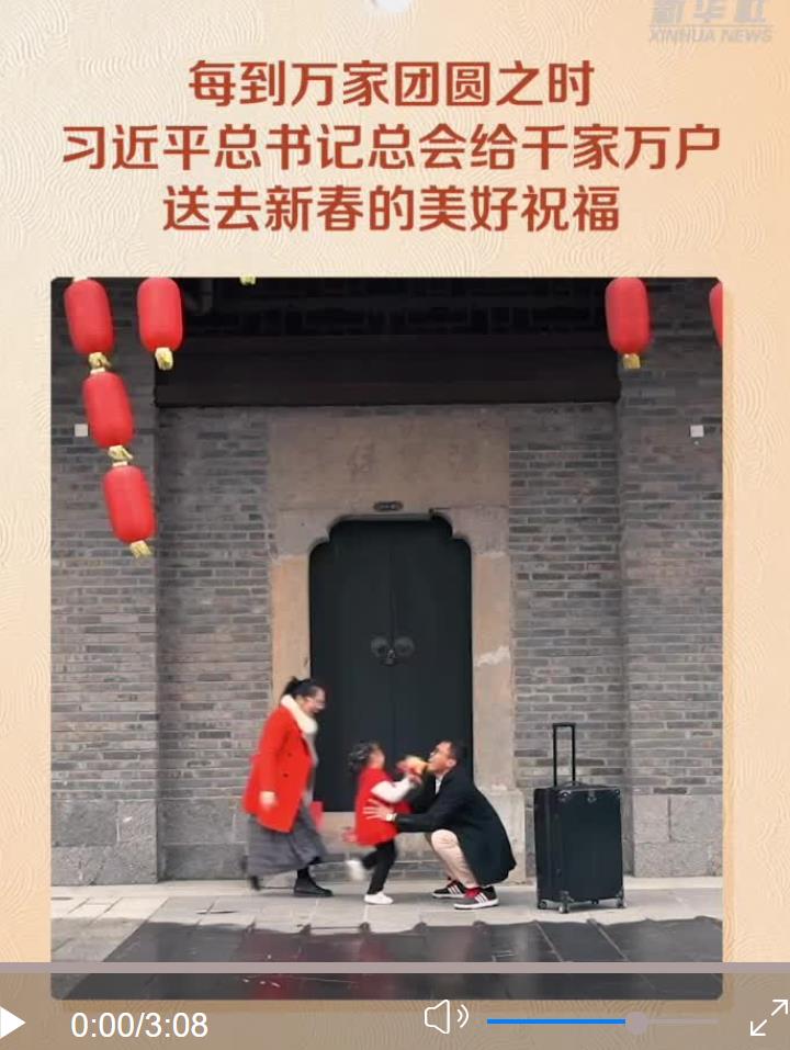 新春佳節(jié),中華大地流光溢彩、歡樂祥和。每到這萬家團(tuán)圓之時(shí),習(xí)近平總書記總會(huì)給千家萬戶送去新春的美好祝福。一聲聲祝福,傳遞著直抵人心的溫暖。一句句勉勵(lì),凝聚起奮進(jìn)不息的力量。 ??總策劃:劉健 ??策劃:李拯宇 ??出品:孫志平 ??制片:樊華、秦大軍 ??統(tǒng)籌:劉佩 ??編導(dǎo):郭琳、周夢(mèng)蝶 ??包裝:胡心懿(實(shí)習(xí)) ??配音:王帥龍 ??新華社音視頻部制作 ??新華通訊社出品