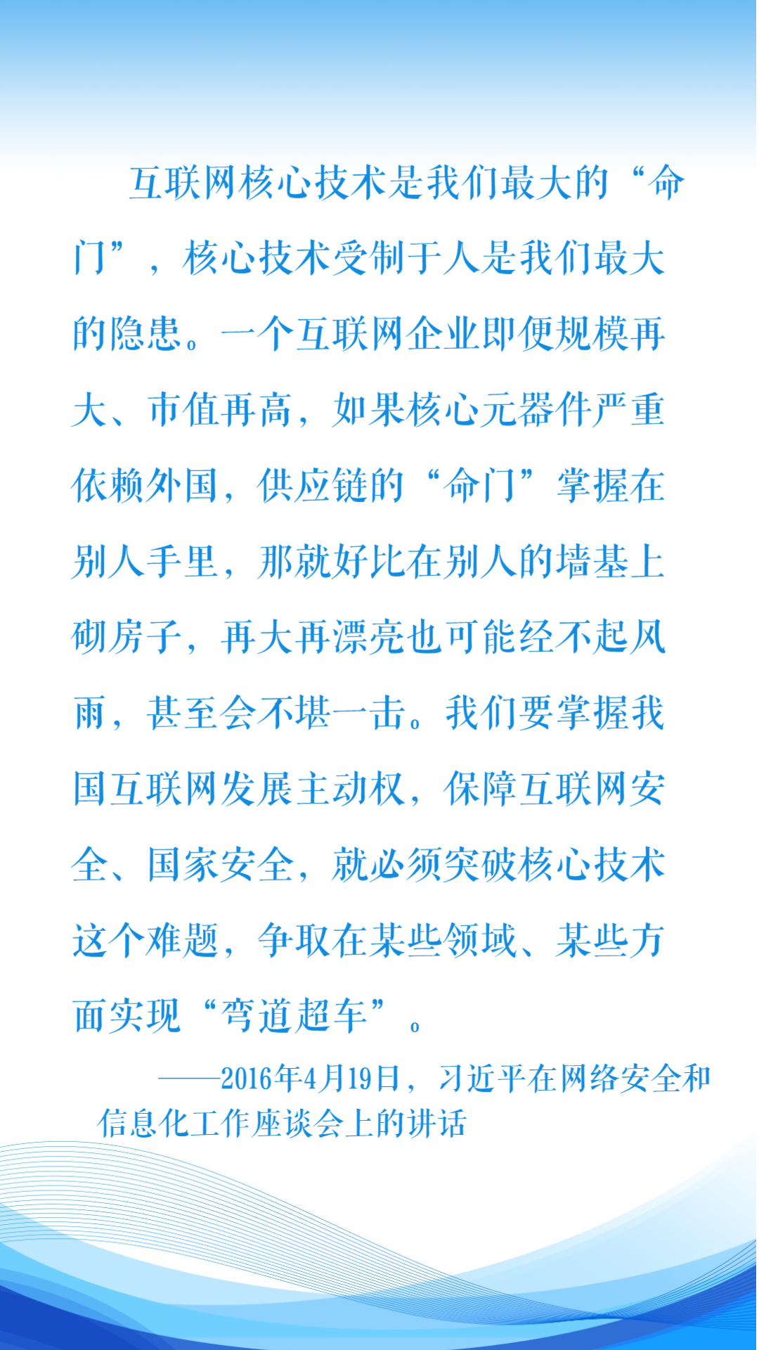 網(wǎng)信事業(yè),代表著新的生產(chǎn)力和新的發(fā)展方向。網(wǎng)信領(lǐng)域的競爭,也是不同國家數(shù)字關(guān)鍵核心技術(shù)自主創(chuàng)新能力的競爭。要在網(wǎng)絡(luò)時代保障國家安全,要推進中國式現(xiàn)代化,就必須牽住數(shù)字關(guān)鍵核心技術(shù)自主創(chuàng)新這個“牛鼻子”,解決核心技術(shù)受制于人的隱患,提升自主創(chuàng)新能力,努力實現(xiàn)高水平科技自立自強。(肖聰聰)