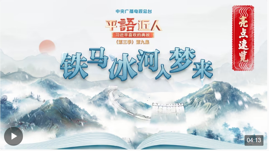 2月26日,《平“語(yǔ)”近人——習(xí)近平喜歡的典故》(第三季)播出第九集《鐵馬冰河入夢(mèng)來(lái)》。