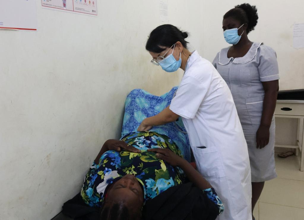 ??2023年2月27日,在塞拉利昂首都弗里敦,一名中國醫(yī)療隊的醫(yī)生正在為患者檢查身體。