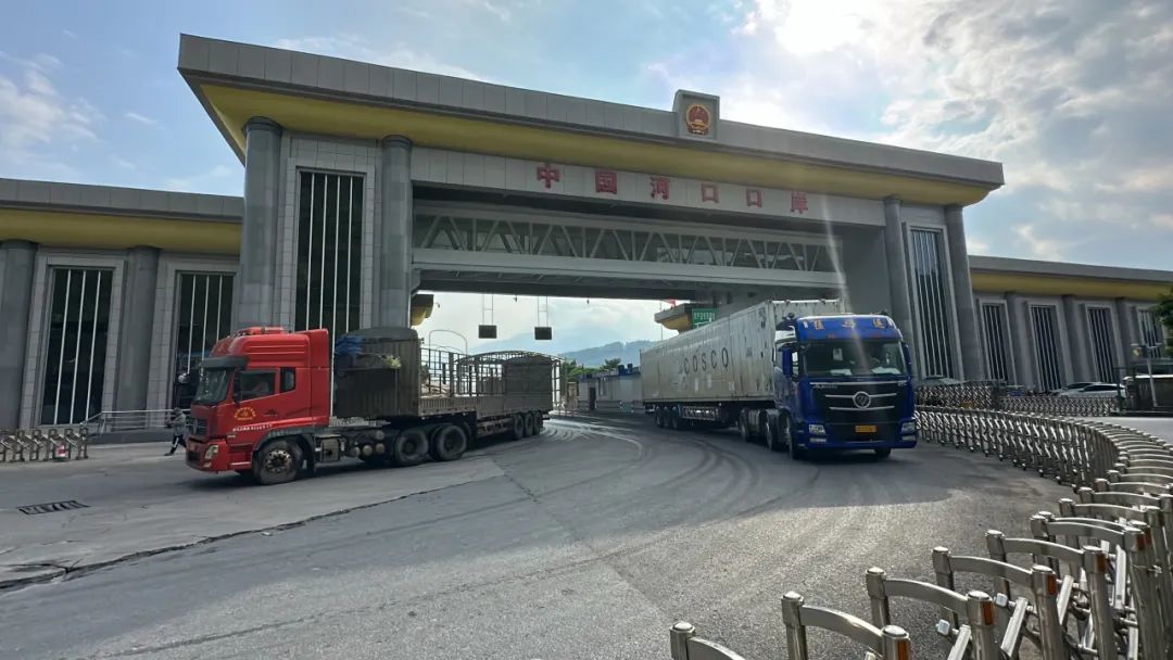 貨車駛?cè)牒涌诳诎?圖源:“國門河口”微信公眾號