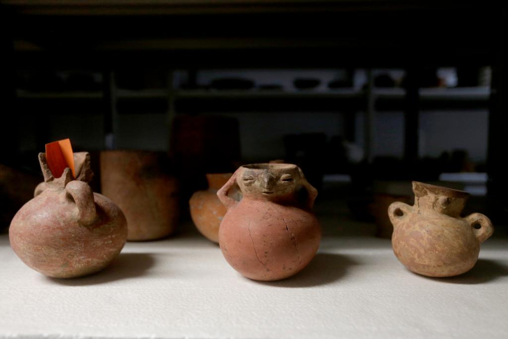 ??2023年6月8日,在洪都拉斯科潘瑪雅遺址國際考古隊倉庫內拍攝的陶器文物。
