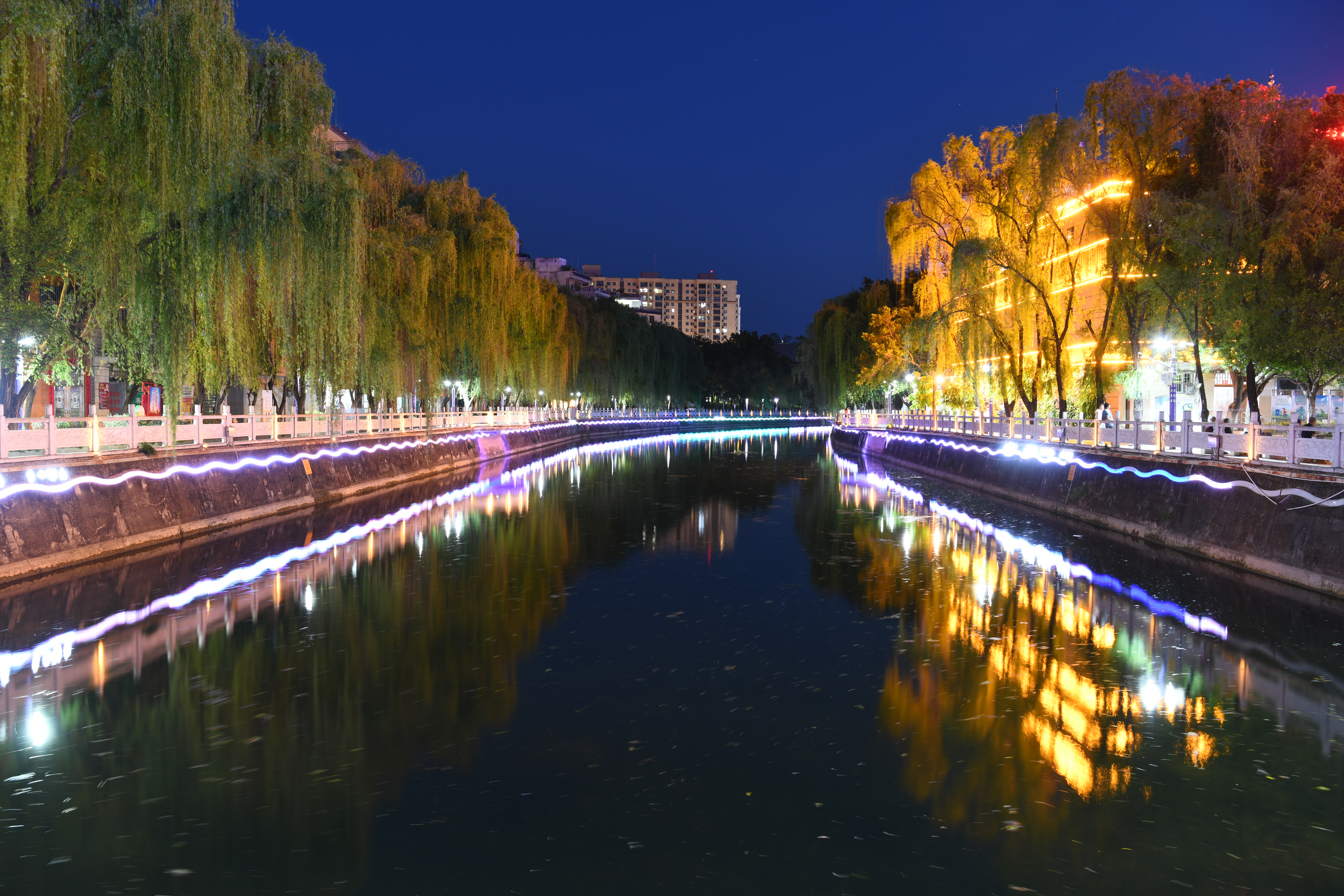 4月10日晚,華坪縣鯉魚河畔燈光璀璨、流光溢彩。