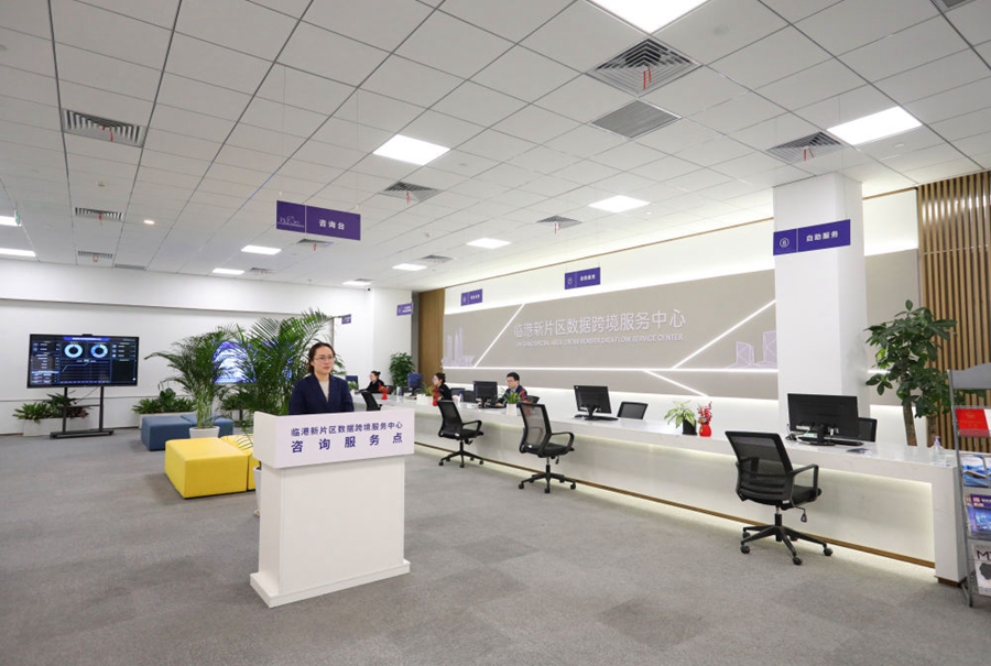 ??中國(上海)自由貿(mào)易試驗(yàn)區(qū)臨港新片區(qū)數(shù)據(jù)跨境服務(wù)中心內(nèi)景。該中心4月7日啟用運(yùn)營(yíng),致力于為數(shù)據(jù)處理者提供全方位、全流程數(shù)據(jù)跨境服務(wù),包括材料受理、業(yè)務(wù)咨詢等,在臨港新片區(qū)打造數(shù)據(jù)跨境流動(dòng)的綠色通道(2024年4月9日攝)。