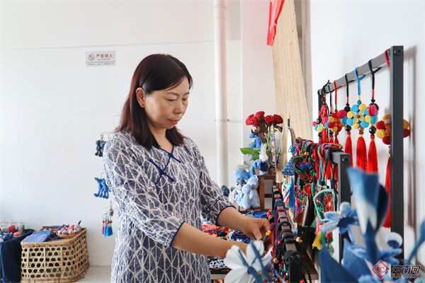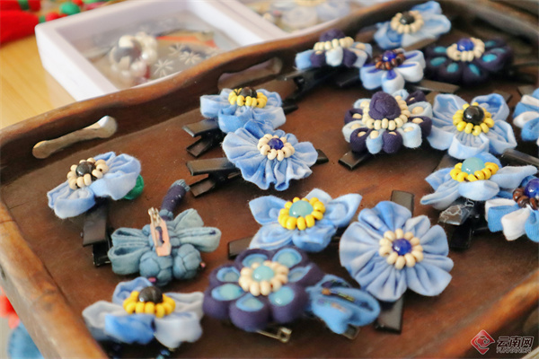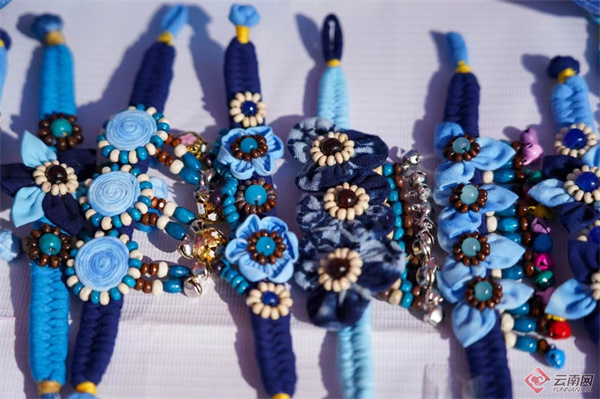 在她的巧手之下,彩色的布條被編織成各式手鏈,加上扎染花朵的點綴,曾經簡單的五彩繩被賦予了更多的生命力。成功設計出布扎系列的耳環(huán)、手鏈、卡包、鑰匙扣、胸針等日常用品,也深受年輕人喜歡?!爸挥芯o跟市場的步伐,不斷創(chuàng)新創(chuàng)意,才能夠繼續(xù)向前走?!眲⒋蝴愓f。