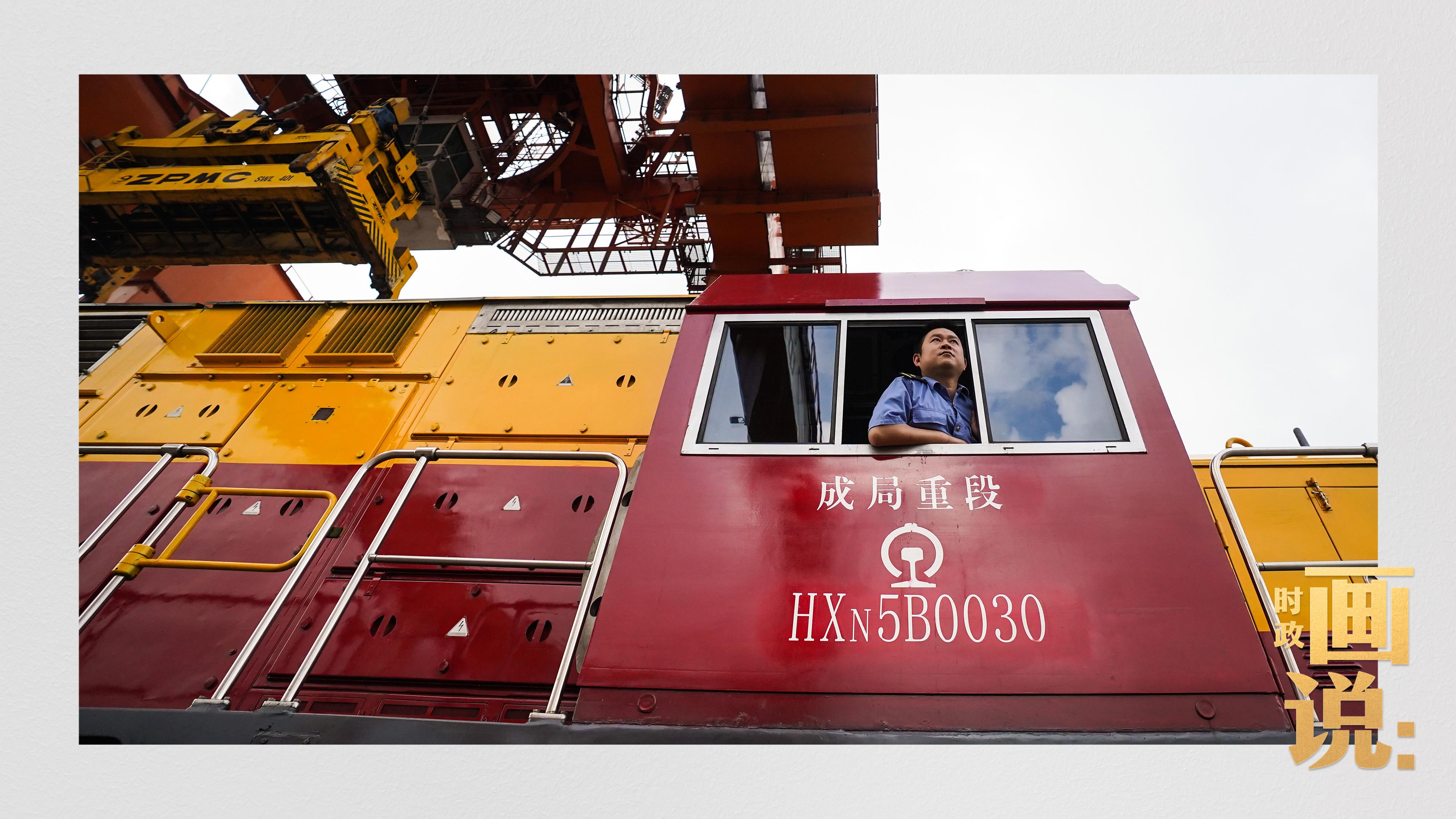 △西部陸海新通道鐵海聯(lián)運(yùn)班列緩緩駛出場站。團(tuán)結(jié)村,沙坪壩。