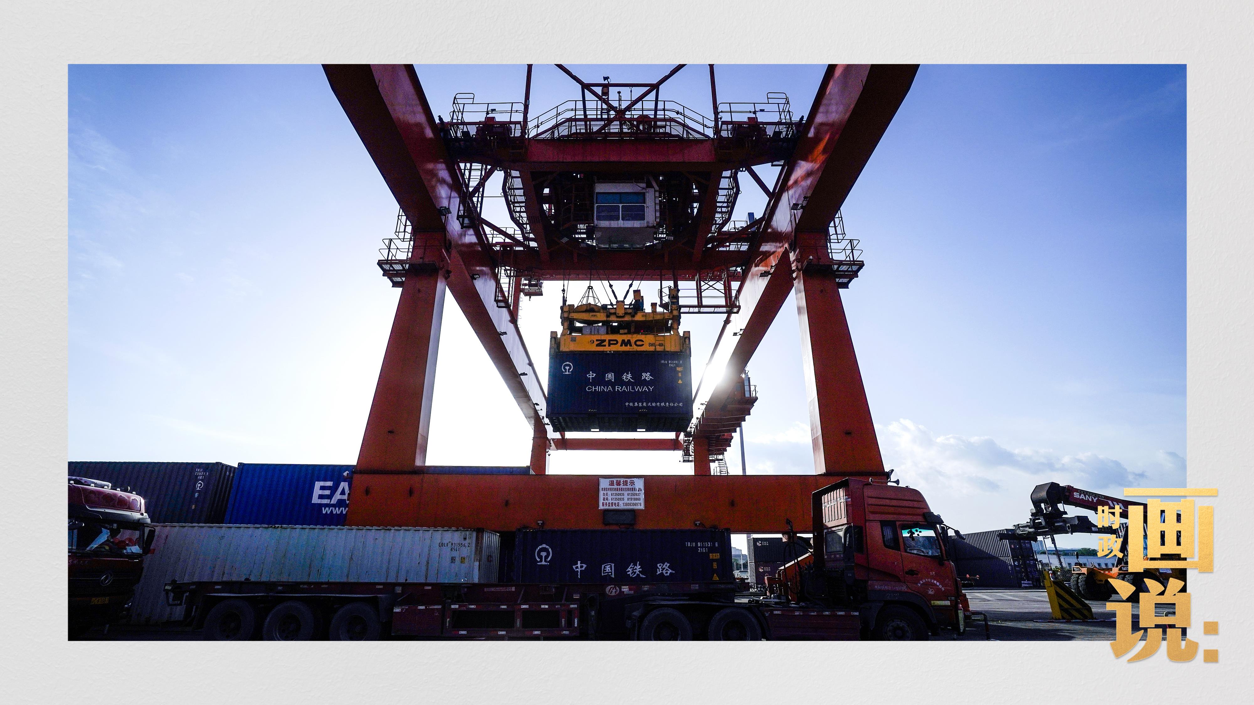 △重慶國際物流樞紐園區(qū)內(nèi),滿載貨物的鐵路集裝箱等待起運(yùn)。團(tuán)結(jié)村,沙坪壩。