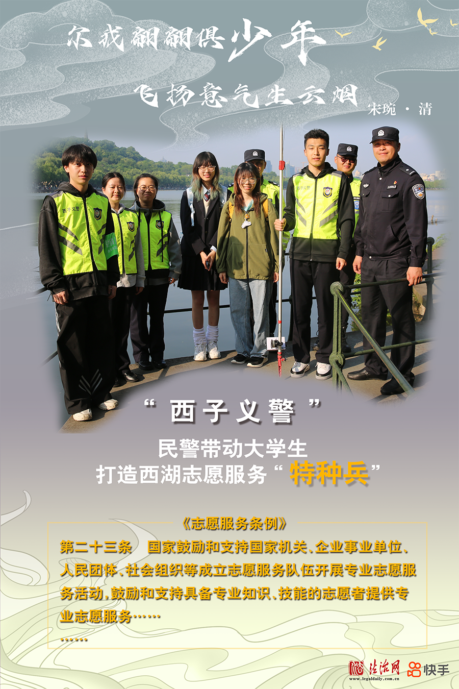 浙江省杭州市公安局西湖風景名勝區(qū)分局組織公安巡特警、消防、交警、行政執(zhí)法、平安志愿者等各方力量參與社會治理工作,逐漸壯大的“西子義警”隊伍已成為西湖邊守望平安的重要力量。近期,一群朝氣蓬勃的青年大學生加入“西子義警”隊伍,共同營造更加和諧的西湖景區(qū)平安環(huán)境。