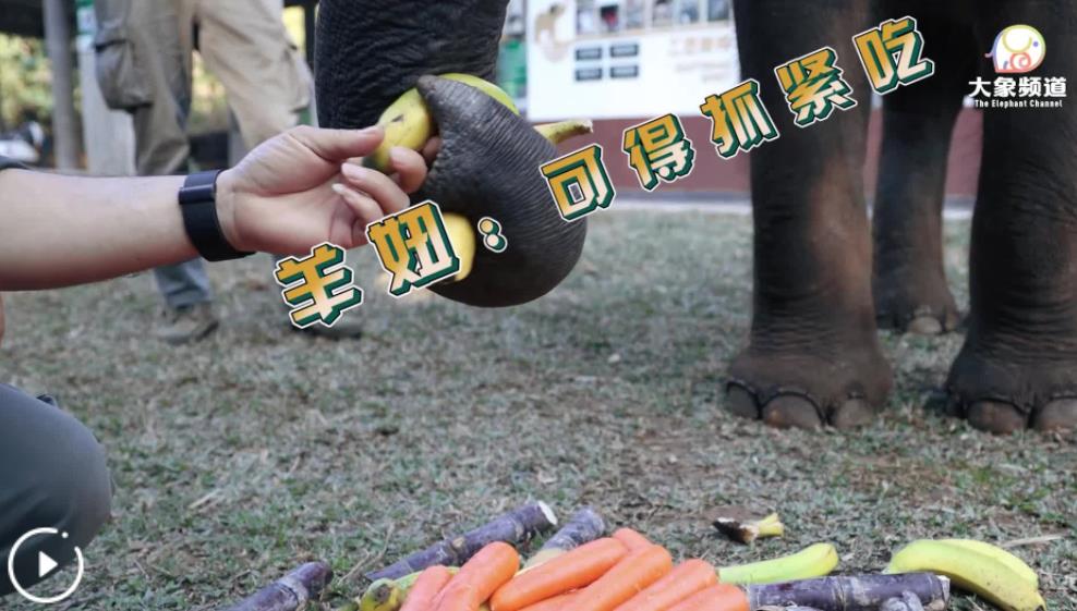 ??香蕉、蘋(píng)果、胡蘿卜……這些都是“羊妞”鐘愛(ài)的食物,這一天,因?yàn)椤把蜴ぁ痹缟显谝盎?xùn)練時(shí)的表現(xiàn)良好,“象爸爸”們?yōu)樗鼫?zhǔn)備了一頓豐盛的下午茶,還細(xì)心地用各種食物擺了一個(gè)愛(ài)心,希望它能多吃一些。但是大象也會(huì)挑食哦,相比之下,“羊妞”似乎沒(méi)有那么喜歡吃甘蔗,對(duì)香蕉的酸甜度也有自己獨(dú)特的偏好,會(huì)選了又選再開(kāi)吃。