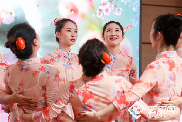 5月10日,昆明云橋醫(yī)院舉行“5·12”國際護士節(jié)文娛匯演活動,外二科護士長王曉丹是演出的主持人。上午10時,身穿淺紫色長裙、發(fā)髻盤得很精致的王曉丹來到演出場地,和正在化妝的姐妹們打招呼:“頭發(fā)挺好的!”“請所有護士長來舞臺前,我們合個影吧?!睂磳㈤_始的盛大演出,王曉丹很期待。