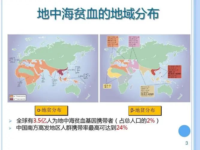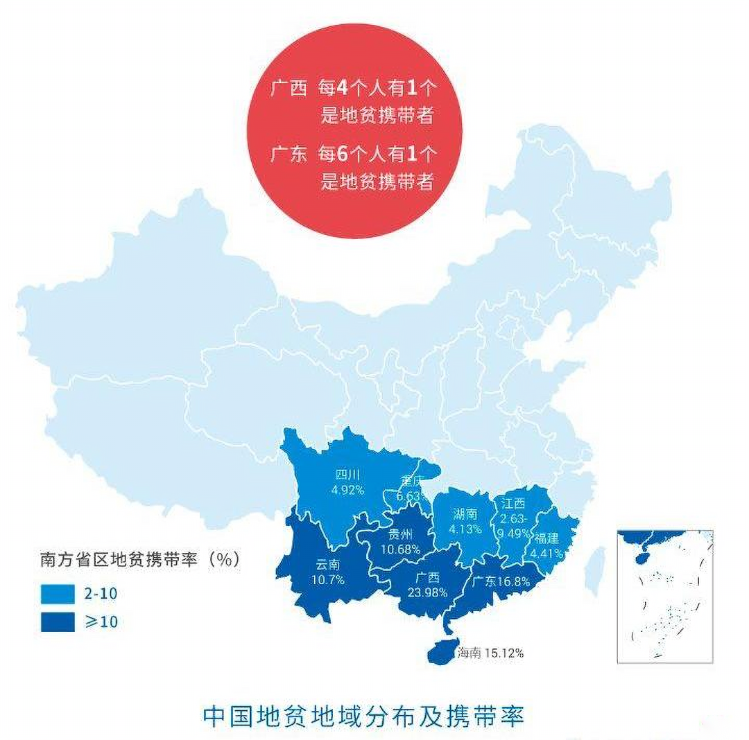 目前,全世界已報道過的會導(dǎo)致地貧產(chǎn)生的基因模組達(dá)200余種。全球約1.5%的人口,接近1億人攜帶有地貧基因。我國各地報道的地中海貧血基因缺陷率為2.5%到20%,兩廣、云南、海南、貴州、四川、重慶、福建、江西等南部省市是該病的高發(fā)區(qū)。