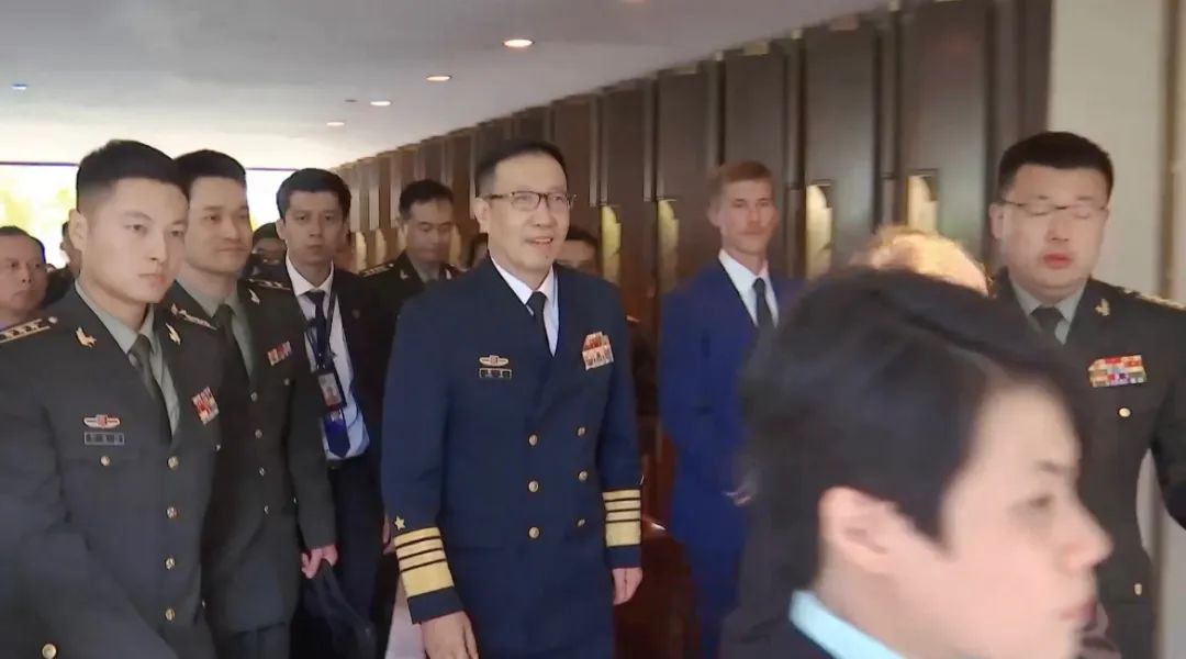 ▲中國(guó)國(guó)防部長(zhǎng)董軍步入會(huì)場(chǎng)