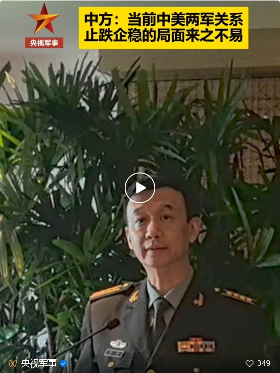 對(duì)于中美兩軍關(guān)系,國(guó)防部長(zhǎng)董軍指出,當(dāng)前兩軍關(guān)系止跌企穩(wěn)的局面來(lái)之不易,值得珍惜。兩軍溝通的目的是增進(jìn)了解、消除誤解、積累互信,進(jìn)而實(shí)現(xiàn)關(guān)系穩(wěn)定。
