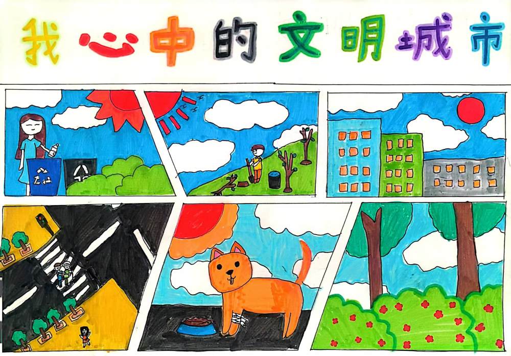學生關于文明城市的繪畫作品。(受訪者 供圖)