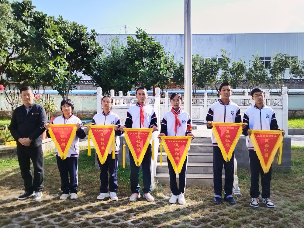學校為優(yōu)秀班級頒發(fā)流動紅旗合影。(受訪者 供圖)