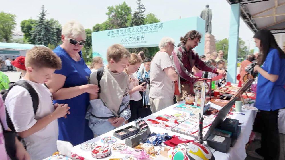 △2025年6月2日,人文交流集市在哈薩克斯坦阿拉木圖市中心的廣場拉開帷幕,非遺技藝、文創(chuàng)產(chǎn)品、中醫(yī)藥知識普及等豐富多彩的活動吸引了眾多當(dāng)?shù)孛癖姟?/span>