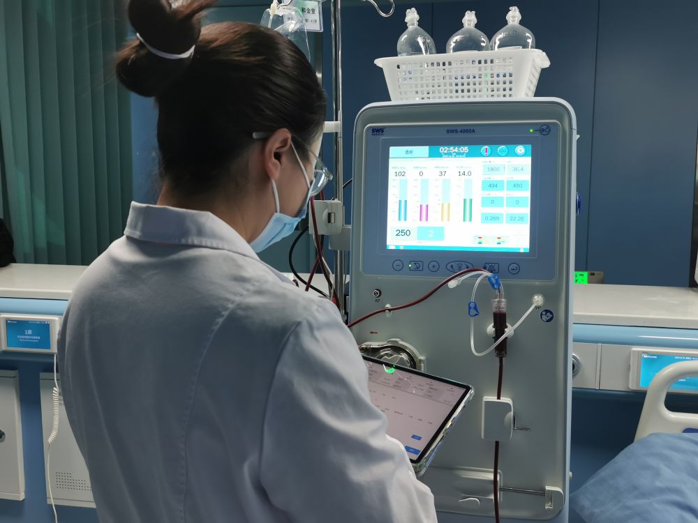 劉益坤醫(yī)生在進行透析患者參數(shù)設(shè)置。(古城區(qū)人民醫(yī)院供圖)