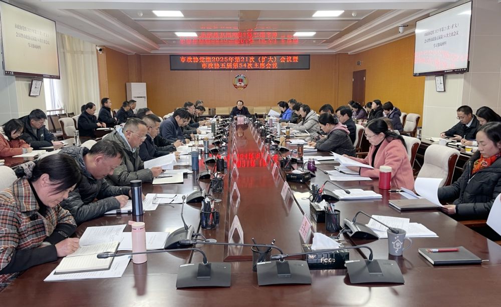 12月24日,市政協(xié)黨組2025年第21次(擴(kuò)大)會議暨市政協(xié)五屆第54次主席會議召開。會議傳達(dá)學(xué)習(xí)習(xí)近平總書記近期重要講話重要指示精神,近期中央、省委、市委重要文件、重要會議精神。