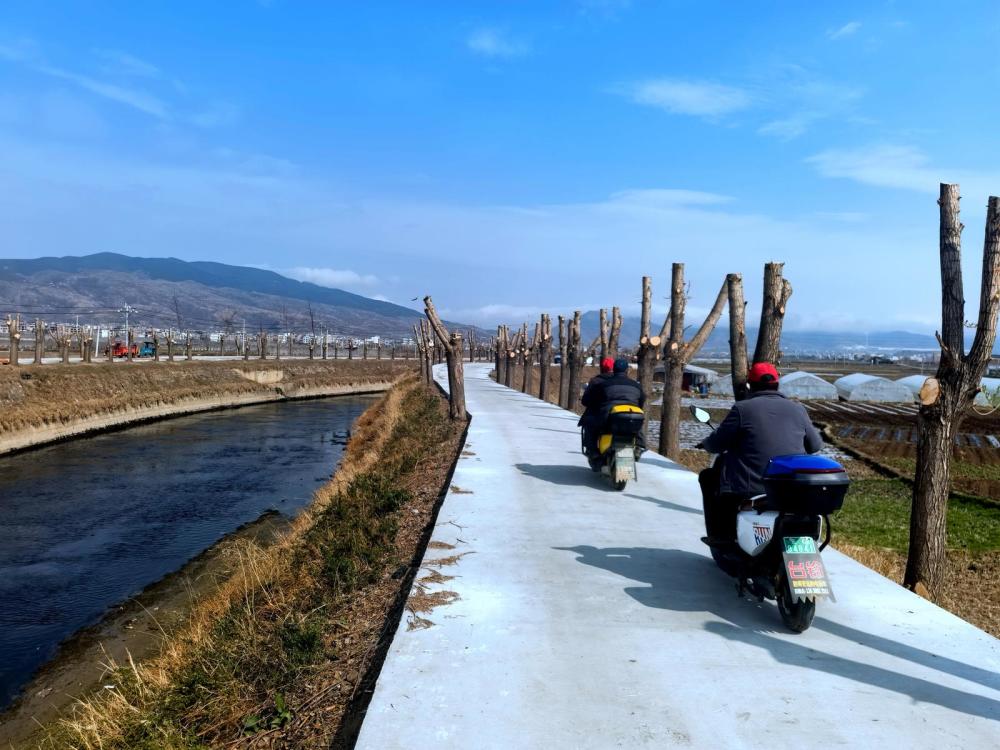 農(nóng)村公路建設(shè)是重中之重。昭陽區(qū)聚焦鄉(xiāng)鎮(zhèn)通三級公路與較大人口規(guī)模自然村通硬化路兩大任務(wù),2021年以來,實施8個鄉(xiāng)鎮(zhèn)通三級公路項目,總里程107.86公里,總投資34476萬元;推進(jìn)30戶以上較大人口規(guī)模自然村通硬化路項目,計劃里程410.175公里,實際實施428.952公里,已建成325.669公里。截至目前,全區(qū)30戶以上自然村組通硬化路比例達(dá)79.14%,鄉(xiāng)鎮(zhèn)通三級公路比例達(dá)65%。在舊圃鎮(zhèn),沿昭魯大河修建了8公里長的產(chǎn)業(yè)路,村民們騎著摩托、三輪車,到田地里勞動十分方便快捷,同時也為今后發(fā)展鄉(xiāng)村旅游業(yè)打下了良好基礎(chǔ)?!耙郧笆峭谅?,遇到下雨天不好走?,F(xiàn)在修成水泥路,路面平整,開著三輪車到田里勞動,又快又方便,今后水果豌豆收獲了,運出去賣了方便。昭魯大河風(fēng)景又好,走起來心情舒暢。”三善堂村9組的李大嬸開心地說。