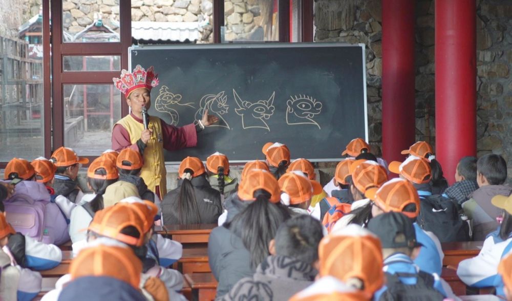 生動的東巴象形文字課。(麗江融媒記者 彭耀先 攝)