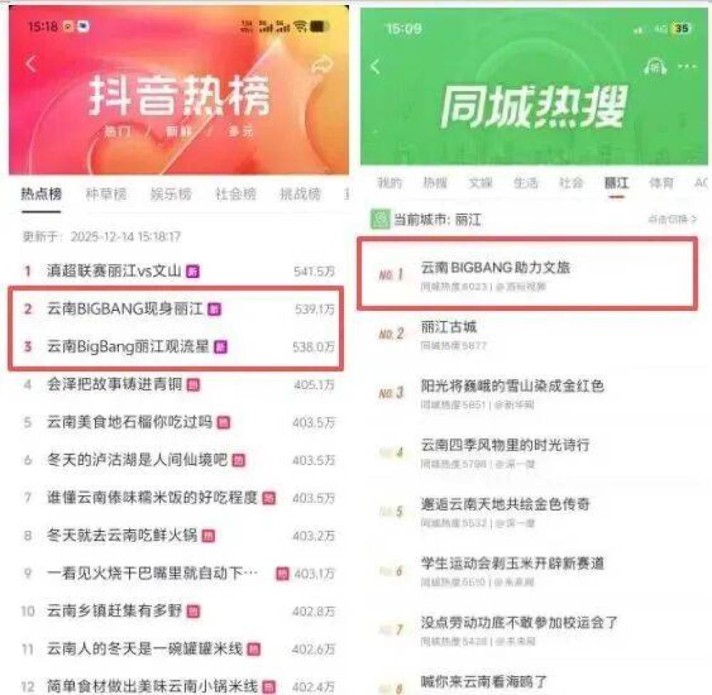 在麗江星托邦營地,傳統(tǒng)納西打跳與現(xiàn)代樂隊(duì)表演在星空下交融,非遺文化借當(dāng)代藝術(shù)形式煥發(fā)新生?;顒泳珳?zhǔn)聯(lián)動抖音百萬粉絲達(dá)人@關(guān)恒(云南Bigbang成員)等KOL,通過直播互動、星空許愿儀式等形式,打造強(qiáng)情感符號,精準(zhǔn)觸達(dá)年輕客群。傳播層面,活動依托新媒體矩陣與全國媒體聯(lián)動實(shí)現(xiàn)聲量倍增,全平臺總曝光量超1.8億次。其中,人民網(wǎng)、人民日報(bào)等數(shù)十家中央媒體聚焦報(bào)道,網(wǎng)易新聞在全國300余城市首頁推送,覆蓋北上廣等核心客源地;微博話題#云南Bigbang助力文旅#登頂多地同城熱搜,閱讀量達(dá)1062.3萬次,抖音相關(guān)話題總播放量超3000萬次,實(shí)現(xiàn)線上億級流量與線下沉浸式體驗(yàn)的高效聯(lián)動。
