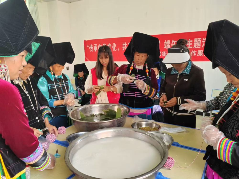大興街道社工站組織社區(qū)婦女一同包粽子。(大興街道社工站 供圖)