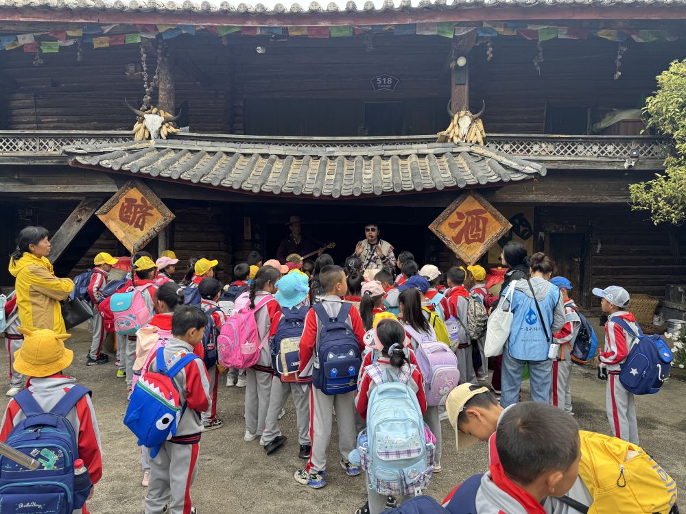 東巴谷景區(qū)“普米人家”接待研學(xué)團。(景區(qū)供圖)