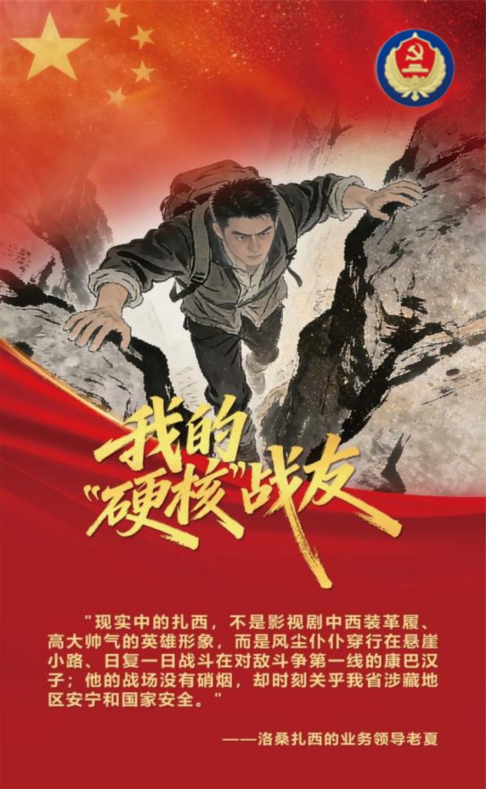 在老夏的眼中,洛桑扎西永遠是那個沖鋒在前的“硬核”戰(zhàn)友。他從不懼怕未知,白天走街串巷、跋山涉水,夜晚鉆研新技術(shù)、探索新戰(zhàn)法,用多年“坐暖冷石”的默默堅持,在某重大行動中發(fā)揮“一錘定音”的關(guān)鍵作用。當(dāng)某個案件出現(xiàn)關(guān)鍵線索時,雖風(fēng)險巨大,但洛桑扎西主動請戰(zhàn),用智慧和勇氣,克服險要環(huán)境,取得重大戰(zhàn)果。老夏總說,忠誠在洛桑扎西身上是具象化的,這份向險而行的赤膽,就是國安干警堅定捍衛(wèi)“兩個確立”、堅決做到“兩個維護”最直接的體現(xiàn)。
