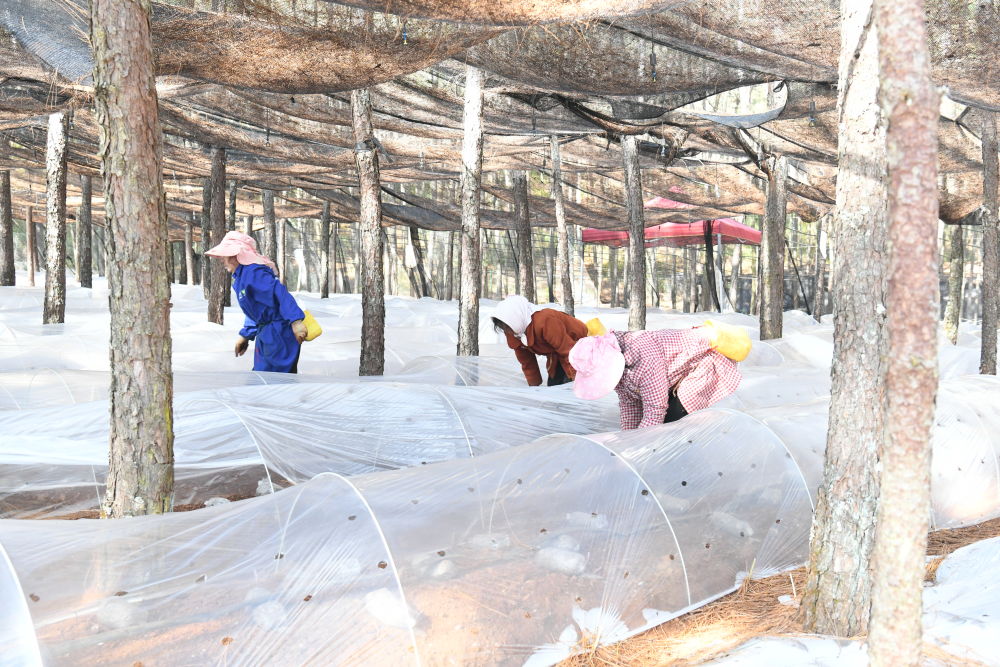 “從去年11月份開始我們種下羊肚菌,預計在今年的2月底能夠上市?!睋?jù)云南永勝森泰工貿(mào)有限公司長坪林下產(chǎn)業(yè)項目負責人陳燕介紹,目前完成食用菌種植5201畝、保育促繁7799畝,現(xiàn)在林下核心區(qū)種植品種有羊肚菌、紅托竹蓀、白靈芝、黑皮雞樅等12種食用菌,勞務用工約3萬人次,增加勞務收入360萬元。