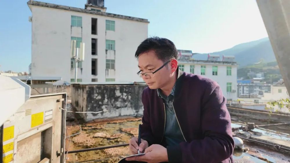 蘭宗祥在檢查5G基站運行狀況。(通訊員 何官池 攝)