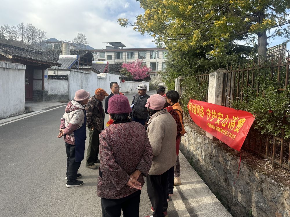 郵儲銀行麗江市分行在古城區(qū)普濟(jì)村開展“3·15”金融消費(fèi)者權(quán)益保護(hù)教育宣傳活動。(和江燕 供圖)