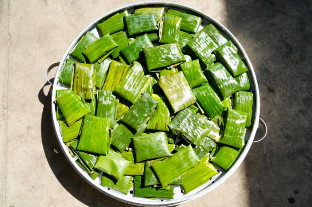 提前處理好的芭蕉葉要均勻抹油