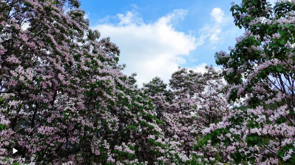 四月,云南香格里拉金江鎮(zhèn)迎來楸樹盛花期。公路旁、村寨間、田野上,高大楸樹繁花滿枝,如云似霞,與田園村舍相映成趣,繪就生機(jī)盎然的高原春景。