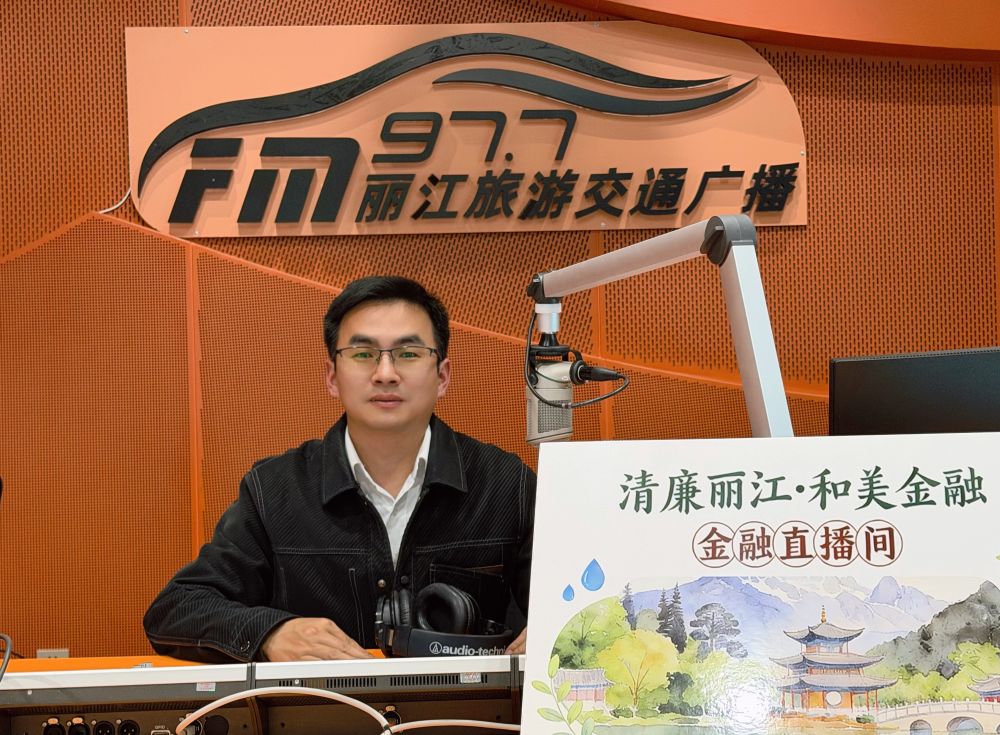4月15日,國家金融監(jiān)督管理總局麗江監(jiān)管分局普惠金融科科長 楊春雷 走進(jìn)FM97.7麗江旅游交通廣播直播間。(麗江融媒記者 徐蕾 攝)