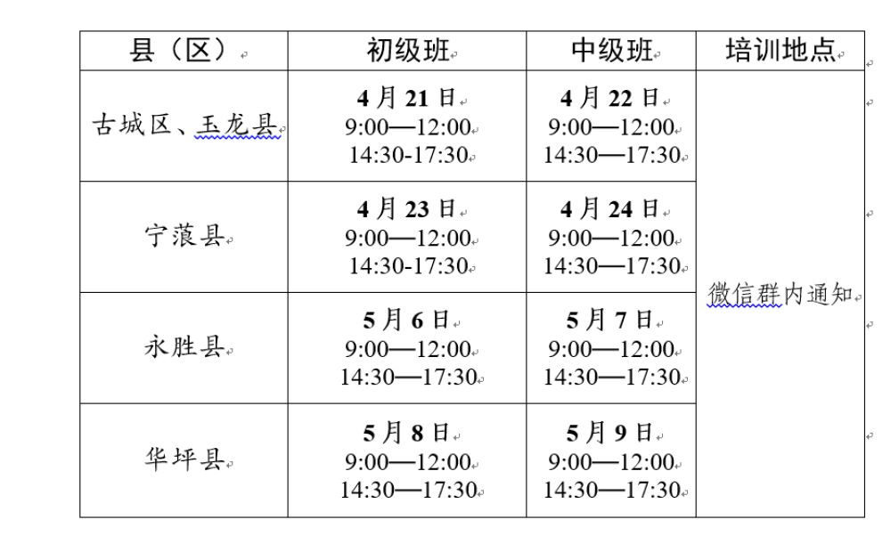 本次線下集中培訓(xùn)按縣(區(qū))分批次進行,請大家看準(zhǔn)自己所在縣(區(qū))的時間: