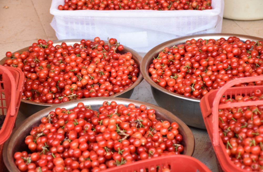 果肉飽滿、汁水豐盈的東江櫻桃在市場(chǎng)上備受青睞。(麗江融媒記者 楊四娟 攝)