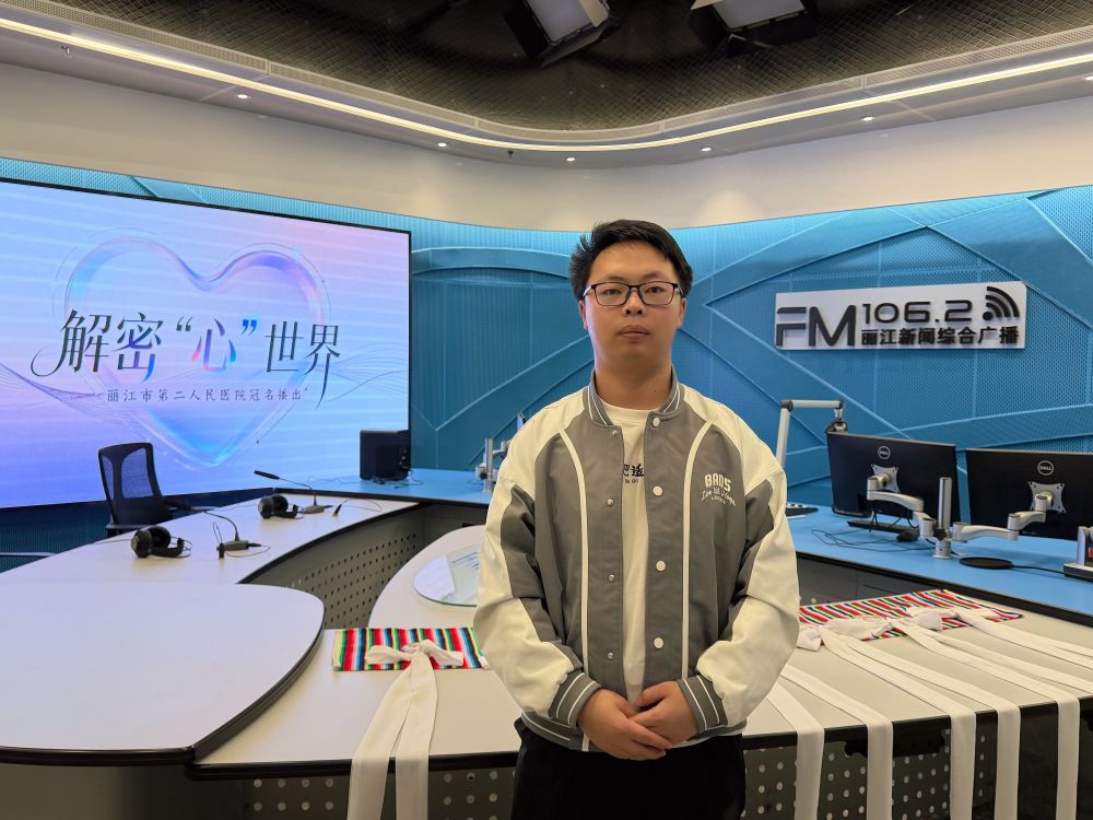 4月22日,麗江市第二人民醫(yī)院精神科醫(yī)師 孔維攀 走進(jìn)FM106.2麗江新聞綜合廣播直播間。(麗江融媒記者 徐蕾攝)
