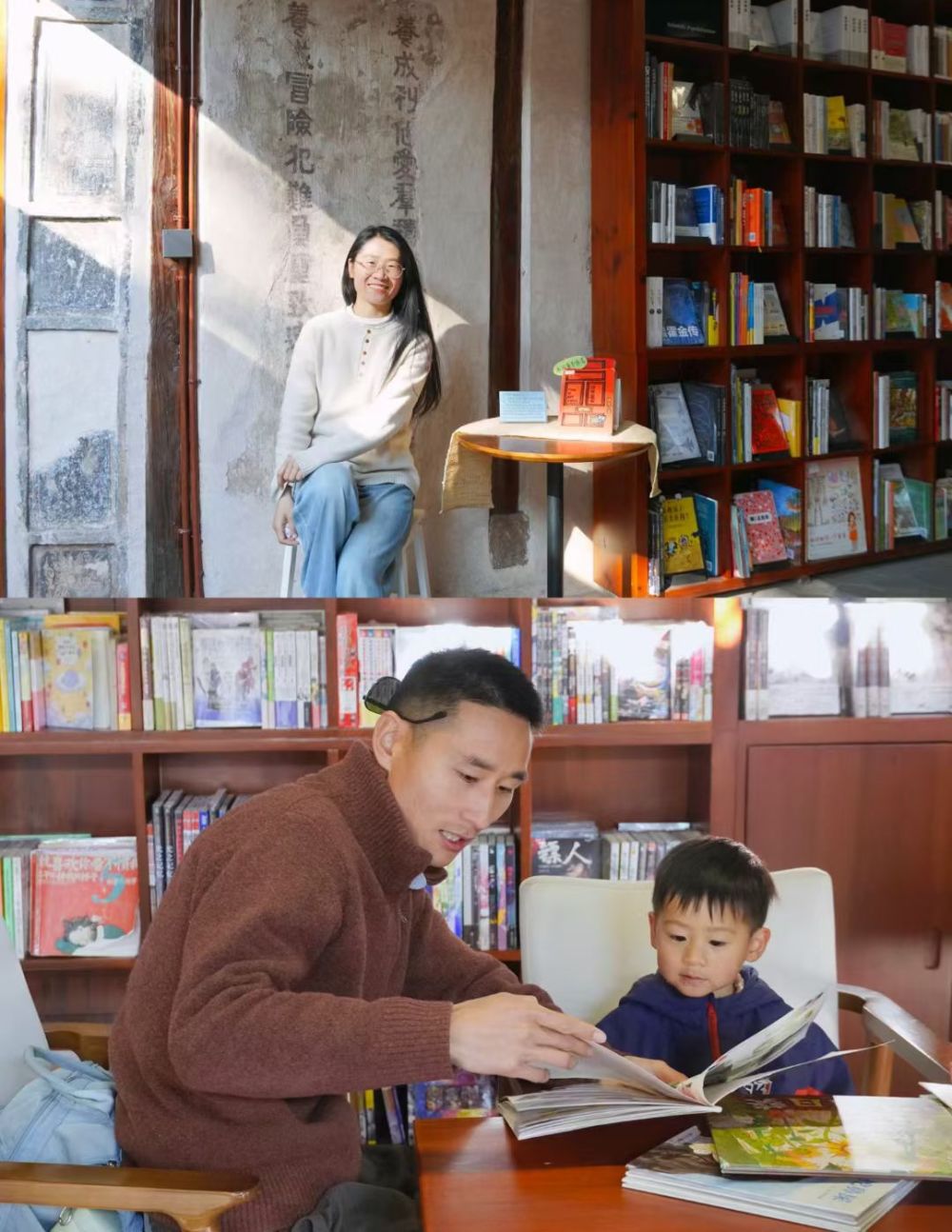 劉云燕夫婦帶孩子走進閱讀空間。(劉云燕 供圖)