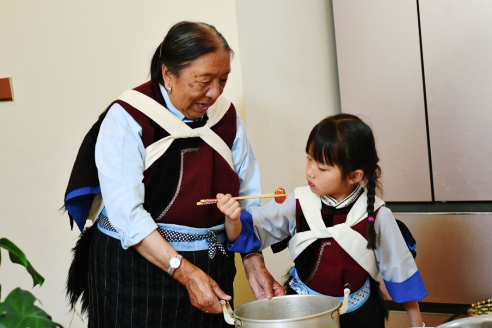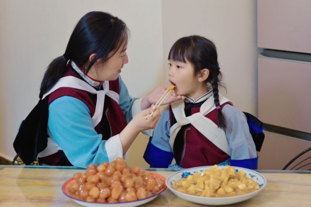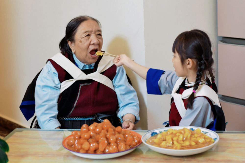 航航讓奶奶品嘗菠蘿蜜餞。(麗江融媒記者 李琳瑛 攝)