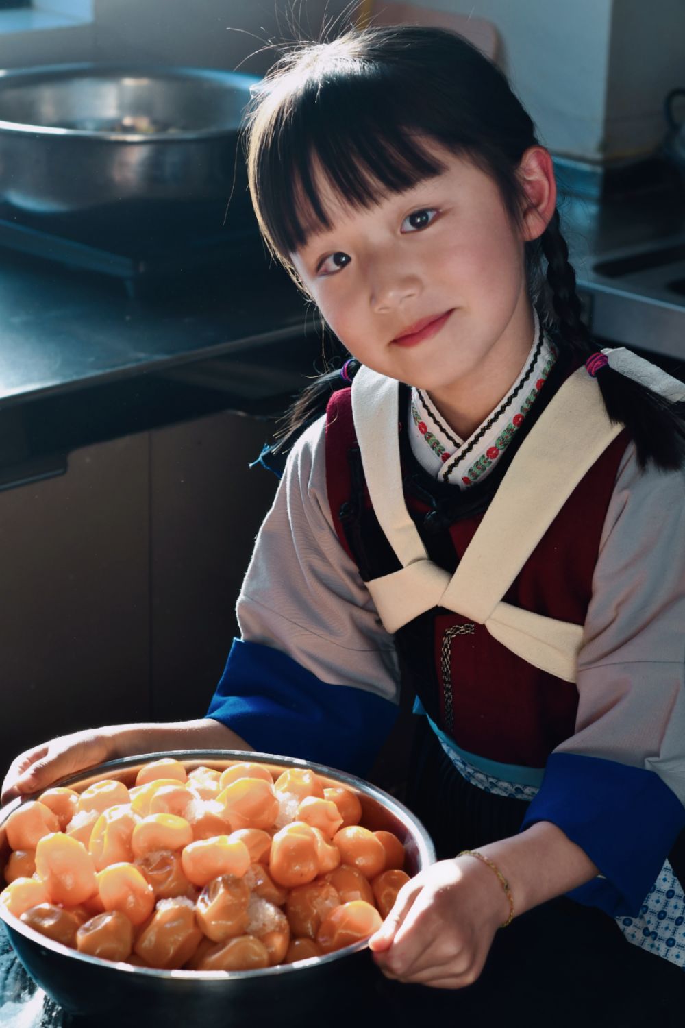 航航品嘗金桔蜜餞。(麗江融媒記者 李琳瑛 攝)