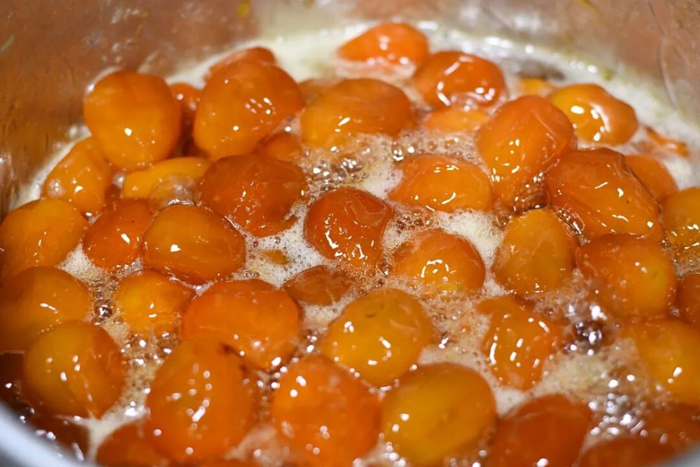 建玲正在水龍頭下洗金桔,水珠濺在她的袖口上,她也不在意,一顆一顆地搓,搓完了還要對(duì)著光看一看,看皮破了沒有。金桔性子硬,得先下鍋煮一遍去澀,煮到軟硬合適的狀態(tài),用糖腌一會(huì)兒,才能慢慢熬煮。菠蘿則更考驗(yàn)刀法,切厚了不入味,切薄了不成形。