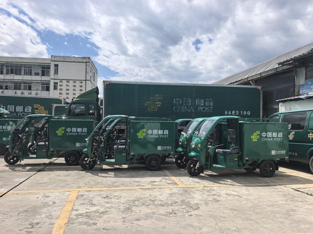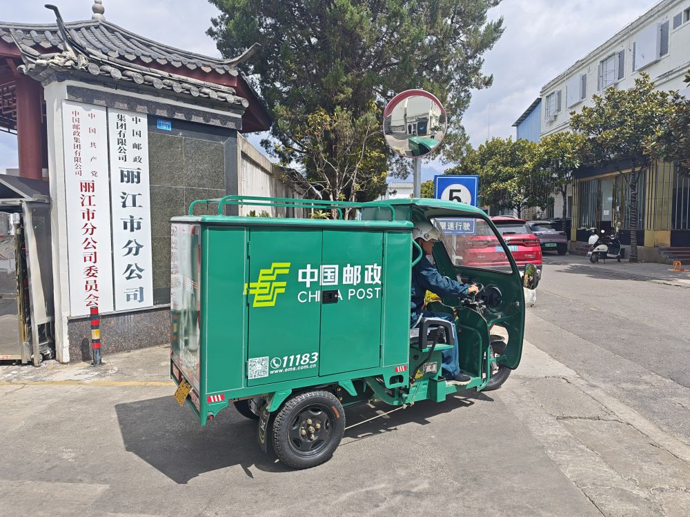 中國(guó)郵政集團(tuán)有限公司麗江市分公司將新能源攬投遞三輪車投入郵件攬遞一線。(中國(guó)郵政集團(tuán)有限公司麗江市分公司 供圖)