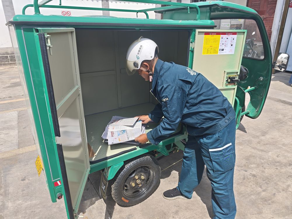 在投放布局上,麗江郵政按照優(yōu)先替換燃油車的原則,將25輛新能源攬投遞三輪車,合理分配至四縣一區(qū),其中古城區(qū)、玉龍縣16輛,永勝縣、華坪縣、寧蒗縣各3輛,重點(diǎn)服務(wù)黨政機(jī)關(guān)、商企、住宅小區(qū)、校園等核心區(qū)域及各類客群。該批車輛相較于傳統(tǒng)投遞工具,其零排放、低噪音的特點(diǎn)適配環(huán)保、噪音敏感區(qū)域,車身小巧可靈活穿梭于窄巷、老舊小區(qū)等復(fù)雜路況,實(shí)現(xiàn)“門到門”精準(zhǔn)投遞,且1.5立方米—2立方米的貨箱容積能滿足日常郵件、黨報(bào)黨刊攬投需求,在環(huán)保性、經(jīng)濟(jì)性、靈活性和服務(wù)效率上更具優(yōu)勢(shì)。針對(duì)黨報(bào)黨刊這一核心配送內(nèi)容,麗江郵政完善保障機(jī)制,依托PDA規(guī)劃投遞路線、實(shí)行人車精準(zhǔn)匹配,規(guī)范流程并落實(shí)專人專車投遞,確保黨報(bào)黨刊安全準(zhǔn)時(shí)送達(dá)。