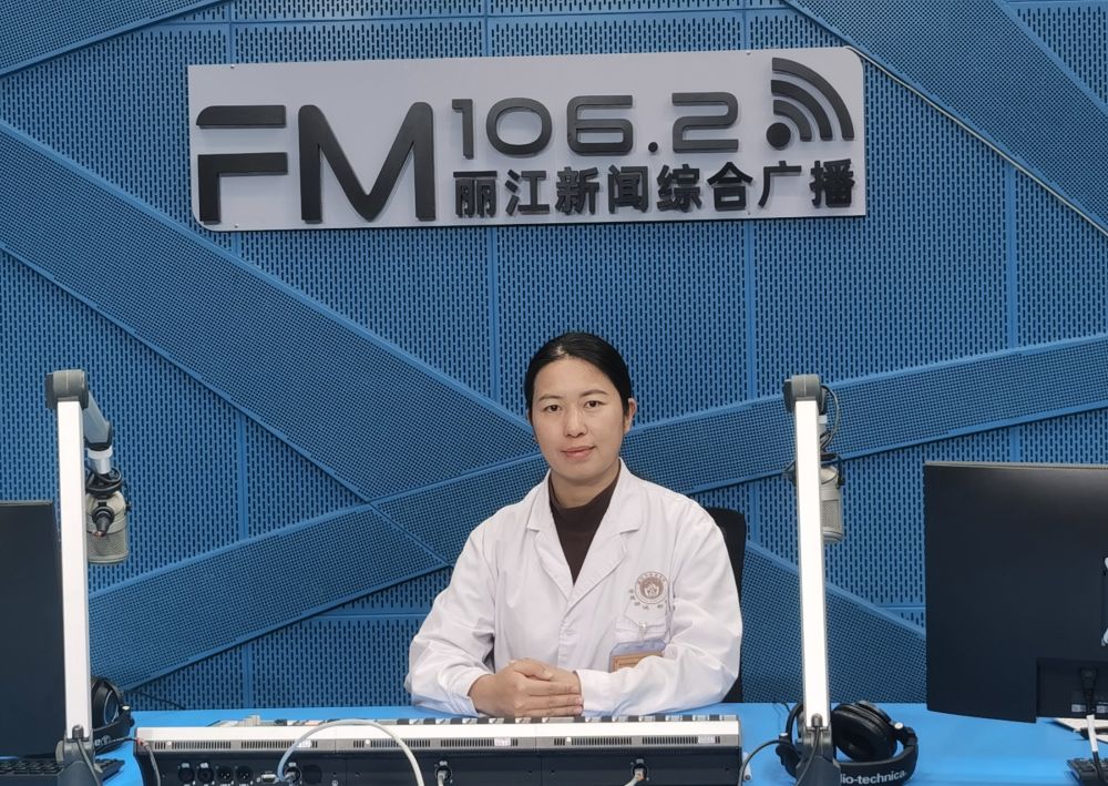 麗江市中醫(yī)醫(yī)院治未病科醫(yī)生甲阿給汝,做客麗江新聞綜合廣播。(麗江融媒記者 李婧 攝)