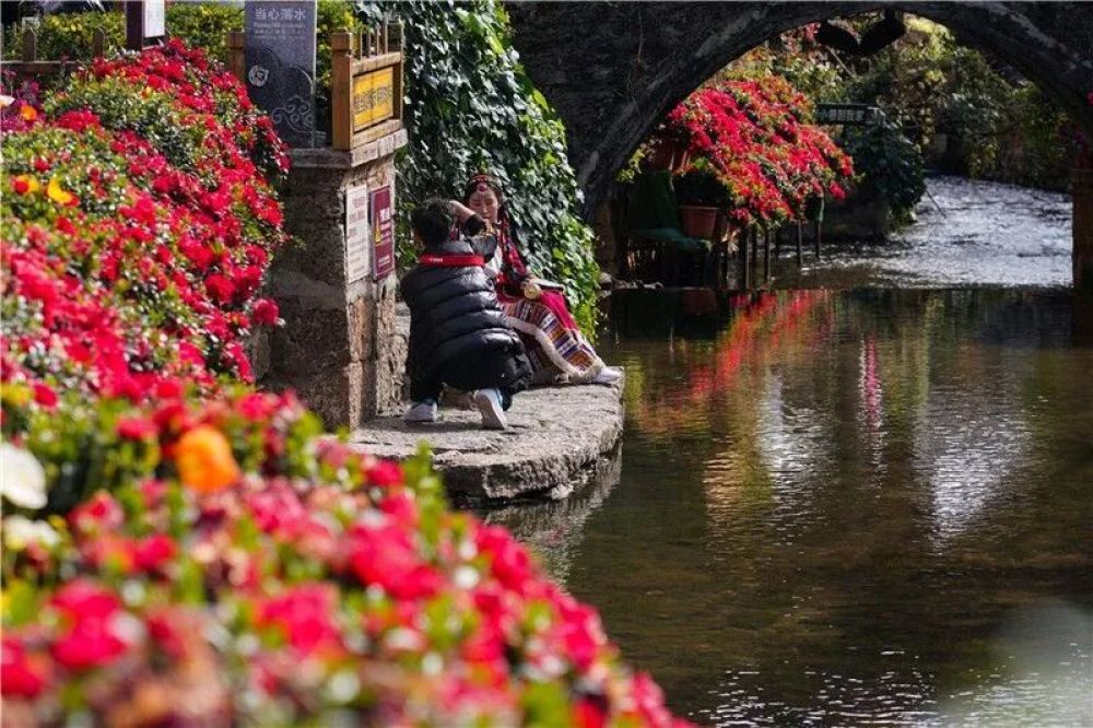 雖已至春末夏初,麗江依舊花開滿城,各類鮮花迎著暖陽競相綻放,景致熱烈又浪漫,暮春花景同樣驚艷,非常適合親子“打卡”、遛娃拍照。